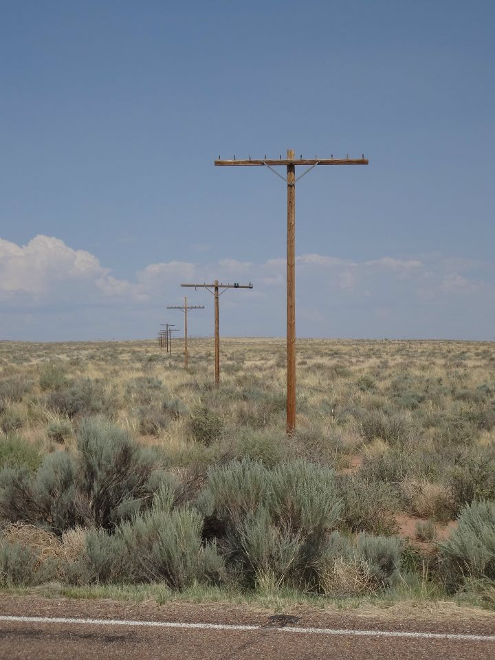 Painted Desert/Petrified Forest National Park on Route 66 in AZ. These telephone poles show where an older alignment of Route 66 ran through here many years ago. The road has been reclaimed by the desert, but the poles remain.