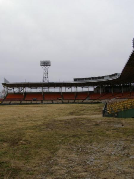 Old US 52/136: Peeking in Bush Stadium from a left fielder&a
