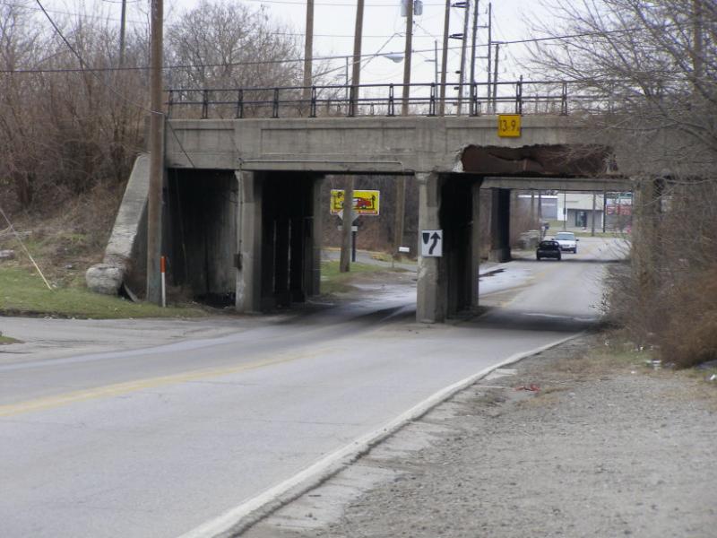 Old US 421: Old railroad overpass above Southeastern Avenue.