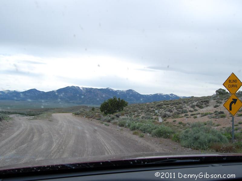 Blind curve heading off of Lincoln Highway in Nevada.